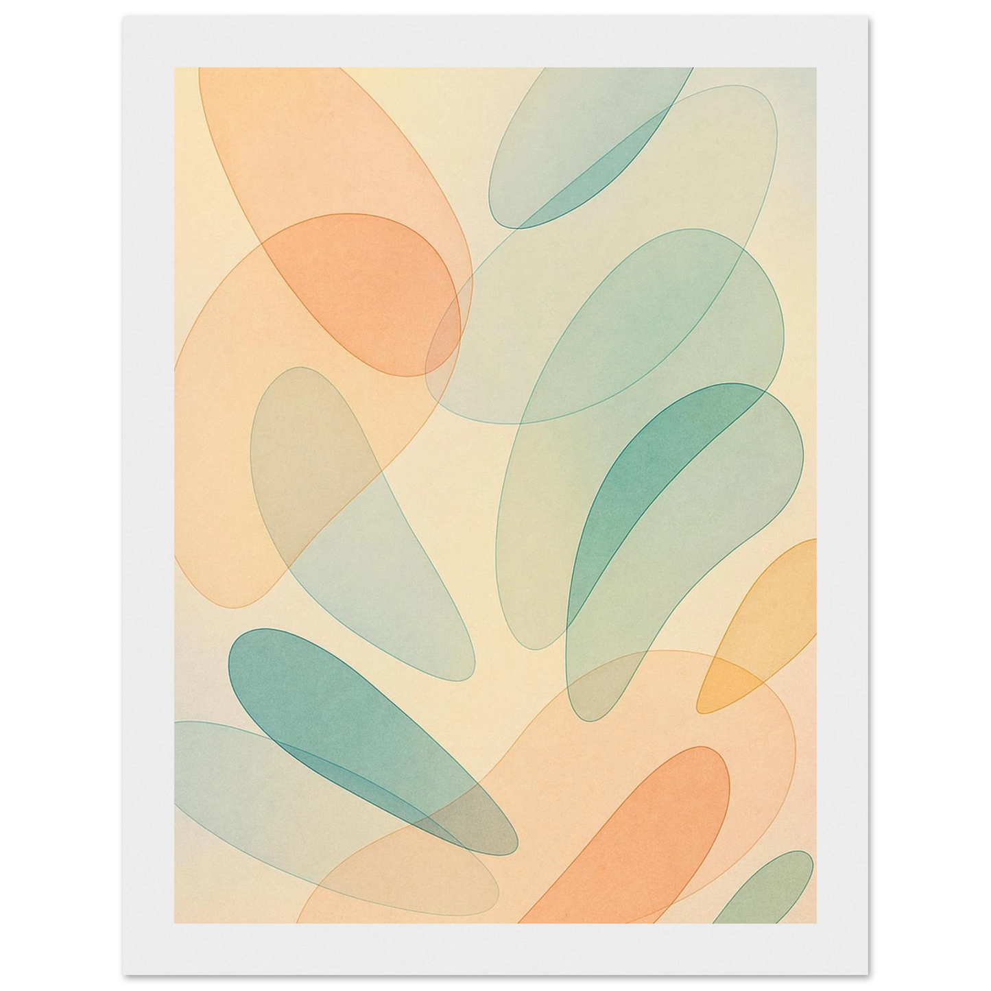 Infuse your space with a serene, modern aesthetic with our Abstract Organic Shapes Art Print. Featuring graceful, overlapping forms in a soothing palette of warm oranges and cool teals, this framed poster brings a touch of contemporary elegance and tranquility to any room. Its soft, translucent layers and gentle color transitions evoke a sense of calm and fluid movement, making it a captivating focal point.